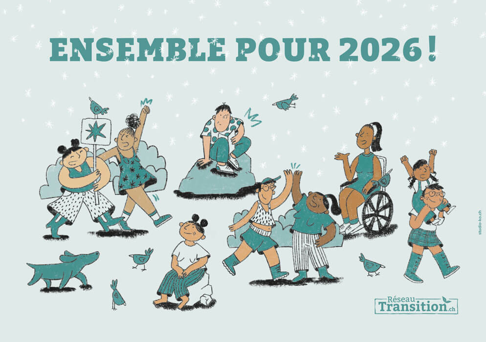 Antenne suisse du mouvement de la Transition (Transition Network), le Réseau de Transition Suisse Romande sensibilise, accompagne et forme à la gouvernance partagée, à la transition intérieure, à la collaboration joyeuse et engagée. La combinaison de divers éléments tels que la permaculture, la vision positive, la reliance à soi et aux autres donne une piste bien balisée vers laquelle nous orienter, nous personnes soucieuses de notre avenir collectif. Nous sommes là pour vous rencontrer, vous accompagner, vous soutenir et surtout apprendre et expérimenter ensemble.