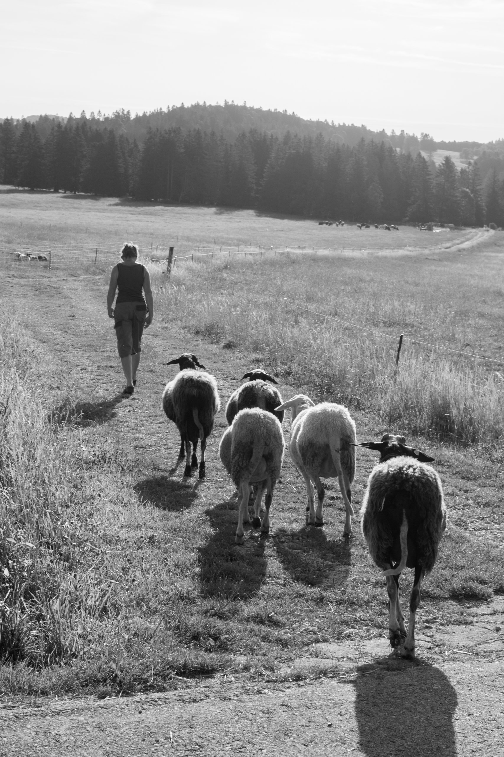 Camille n’aime pas les dogmes. Sa pensée est nuancée, ancrée, lucide. Le loup, par exemple, est un sujet qui la travaille profondément — surtout depuis l’attaque que son troupeau de brebis a subie. À la croisée des chemins, entre ses collègues éleveurs/euses et les urbain·es de passage, elle prête une oreille attentive aux interrogations des un·es et des autres. Avec humilité, elle constate que « les positions sont moins polarisées qu’on ne le croit ». Pour elle, une chose est sûre : « il est nécessaire de repenser nos manières de travailler ».